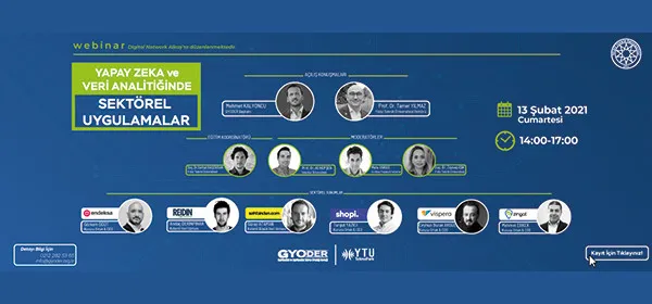 GYODER YTÜ Teknopark işbirliği ile, 13 Şubat 2021 Cumartesi günü 14:00-17:00 saatleri arasında gerçekleşen “Yapay Zeka ve Veri Analitiğinde Sektörel Uygulamalar” online seminerimizde açılış konuşmasını GYODER Başkanı Mehmet Kalyoncu ile YTÜ Rektörü Sn Prof. Dr. Tamer Yılmaz yaptı. GYODER Eğitim, Yayınlar ve Bilgi Üretimi Komite Başkanı Prof. Dr. Ali Hepşen ve GYODER Gayrimenkul Teknolojileri Komitesi Başkanı Mete Varas, YTÜ Teknopark Yönetim Kurulu Üyesi Doç. Dr. Zeynep Işık’ın ve Yapay Zeka Sertifika Programı Eğitim Koordinatörü Doç. Dr. Serhat Başdoğan moderatörlüğünde gerçekleştirildi. Endeksa, Reidin, Sahibinden.com, Shopi, Vispera, Zingat temsilcileri yapay zeka ve veri analitiği uygulamalarını tüm detaylarıyla anlattı.